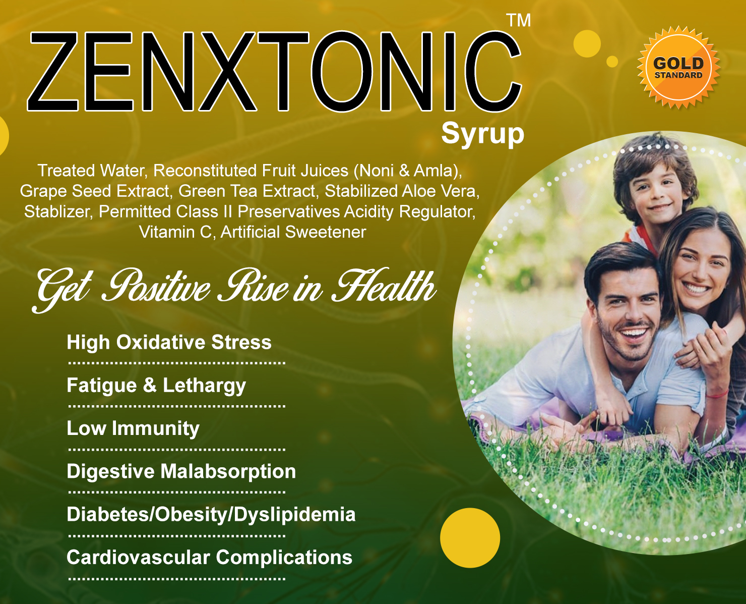 Treated Water, Reconstituted Fruit Juices (Noni & Amla), Grape Seed Extract, Green Tea Extract, Stabilized Aloe Vera, Stablizer, Permitted Class II Preservatives Acidity Regulator, Vitamin C, Artificial Sweetener